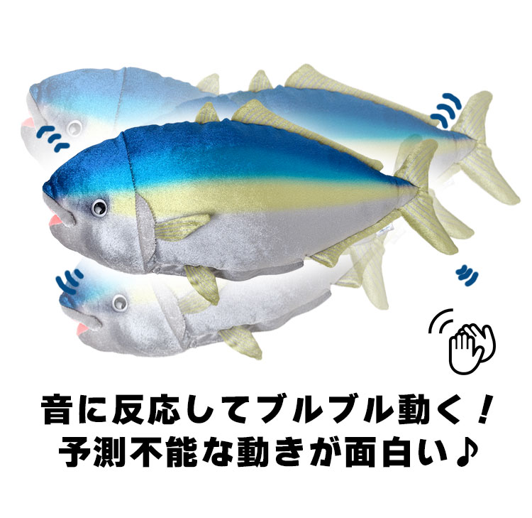 Details 音に反応してブルブル動く魚のぬいぐるみです。